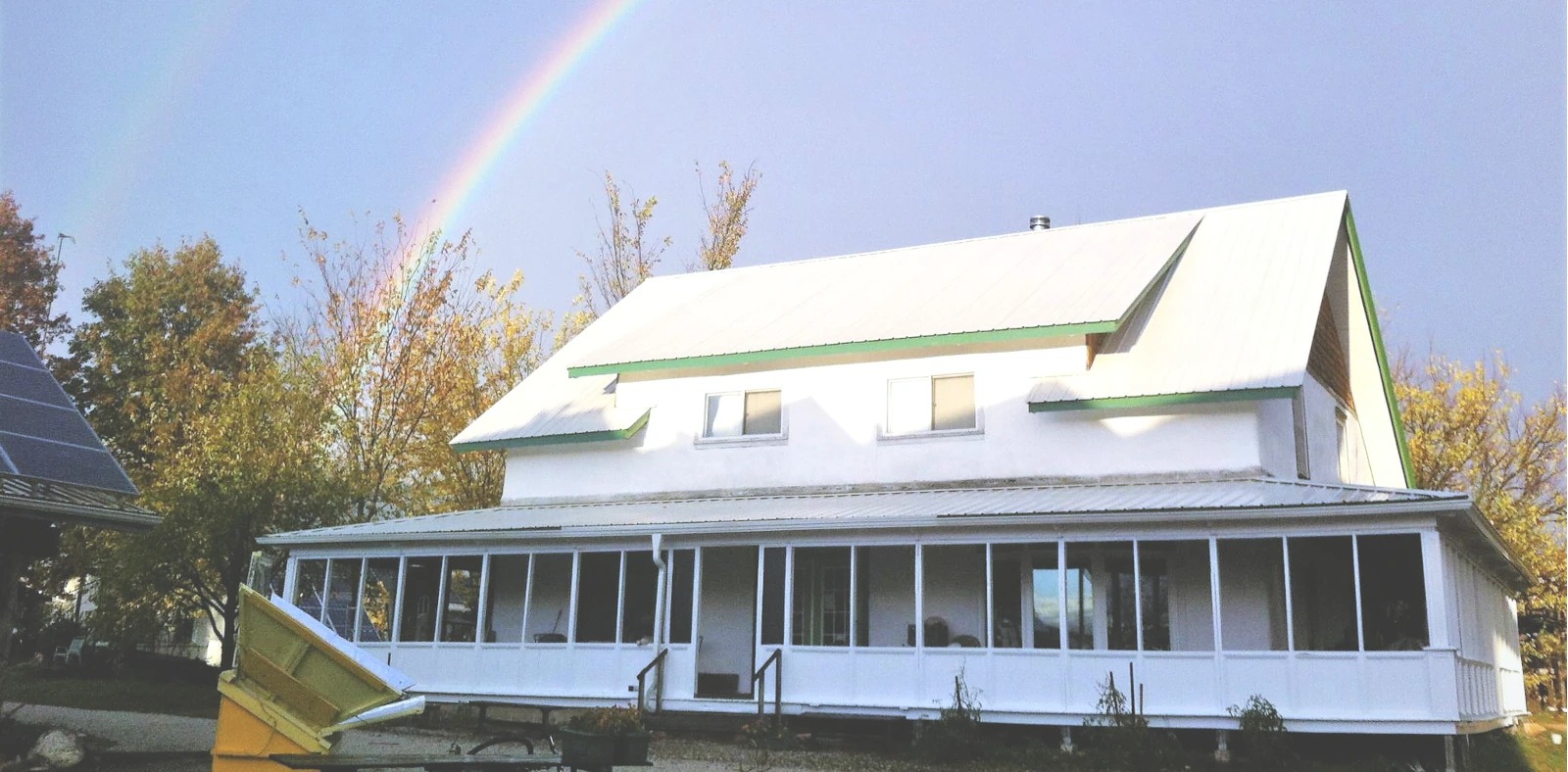 The building was designed and built with the leadership of Kurt and Alline and help from dozens of Rabbits, work exchangers, and neighbors. It is a strawbale structure with natural earth and lime plasters. Rain water is harvested from the roof of the building and stored in a cistern before being filtered and used. Our power comes from a combination of solar panels on the building as well as the local microgrid when the sun is not shining. Graywater is treated on-site and we use a composting toilet system that minimizes energy inputs and eliminates harmful chemicals while creating a fully hygienic output.